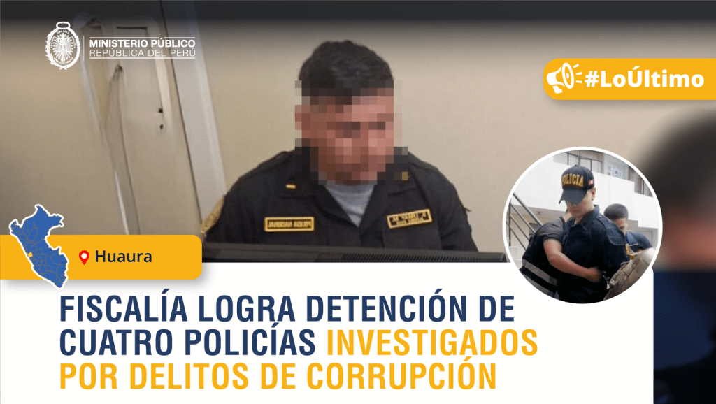 El Primer Despacho de la Fiscalía Corporativa Especializada en Delitos de Corrupción de Funcionarios de Huaura logró la detención preliminar judicial de cuatro miembros de la Policía Nacional del Perú (PNP) investigados por los delitos de cohecho pasivo en la función policial, concusión, extorsión y secuestro.
