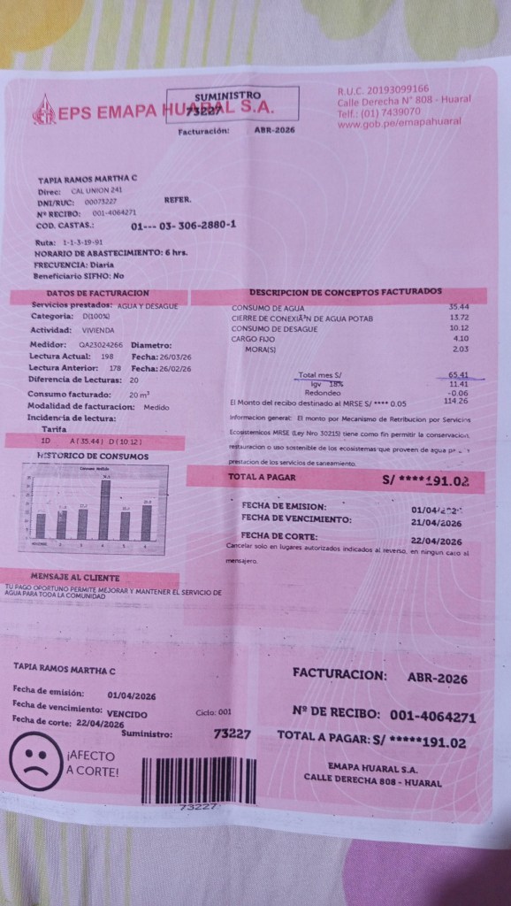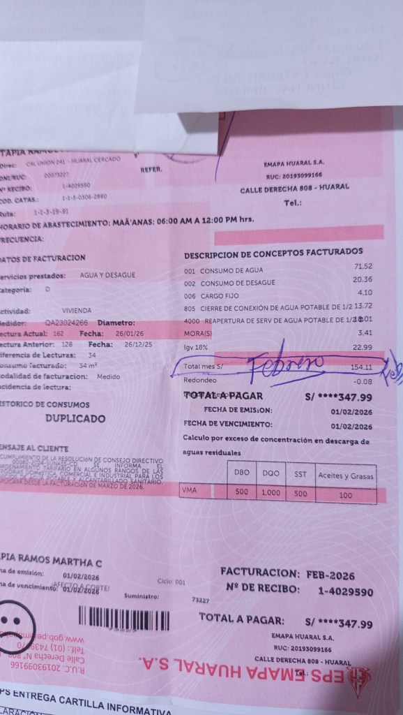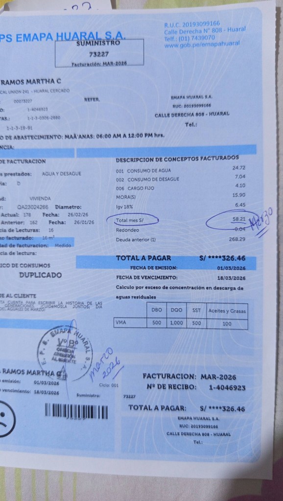 Mientras en medios nacionales se difunde publicidad asegurando que en Huaral hay agua las 24 horas, la verdad en las calles es otra: desabastecimiento constante, racionamiento, maltrato al usuario y recibos con cobros exorbitantes por un servicio deficiente.
