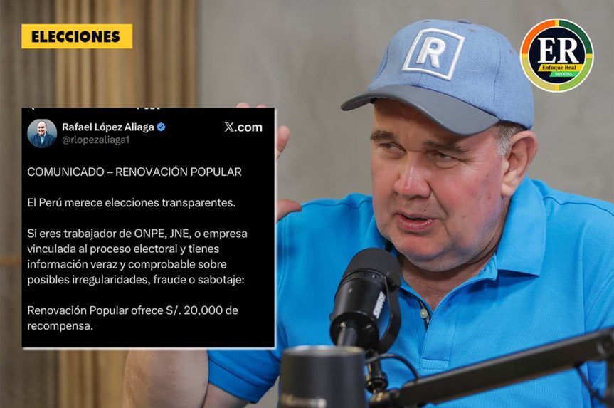 El candidato presidencial de Renovación Popular, Rafael López Aliaga, anunció una recompensa de S/ 20 mil para quienes brinden información comprobada sobre presuntas irregularidades, fraude o sabotaje en el proceso electoral del 12 de abril, en medio de cuestionamientos al sistema y un pedido formal al Jurado Nacional de Elecciones (JNE) para suspender la proclamación de resultados.