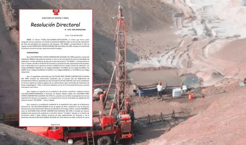 La medida, oficializada mediante la Resolución Directoral N.º 0194-2026-MINEM/DGM, del 17 de abril, permite a la empresa comenzar operaciones en el tajo La Tapada, ubicado en la provincia de Islay, como parte de la fase inicial del proyecto de cobre.