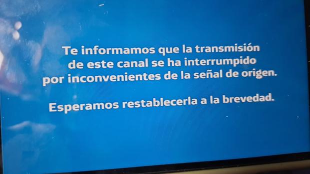 En las pantallas de televisión se mostró una pantalla azul con el siguiente mensaje: Te informamos que la transmisión de este canal se ha interrumpido por inconvenientes de la señal de origen. Esperamos restablecerla a la brevedad.