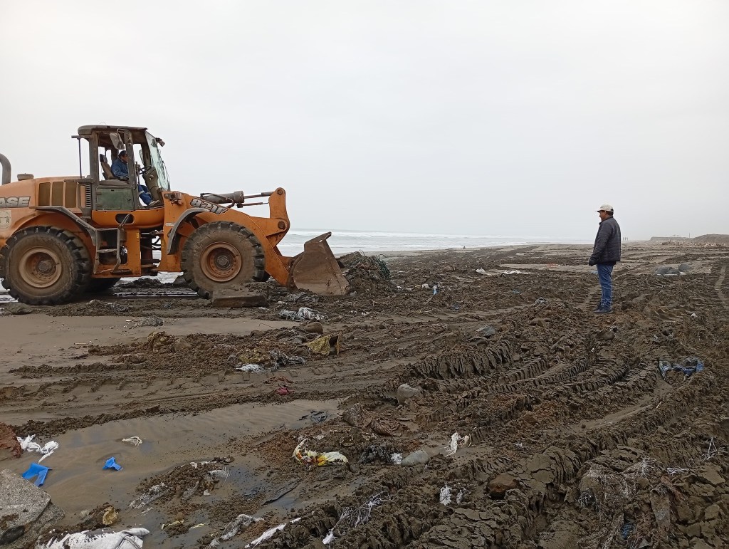 Un equipo de trabajadores operativos y maquinaria pesada se trasladó hasta las playas de Chacra y Mar para continuar la limpieza y erradicación de gran cantidad de residuos sólidos que en los últimos días se vienen incrementando considerablemente.