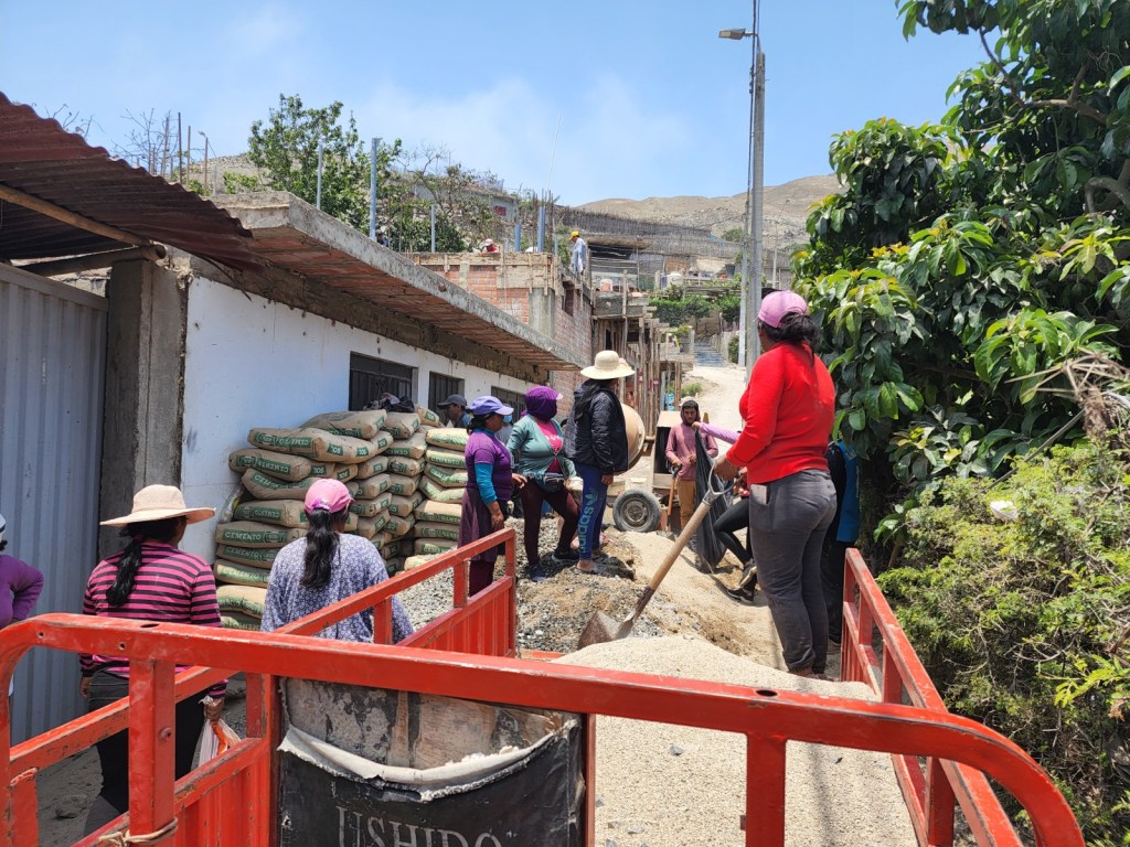 Para lograr el importante avance de la obra, hasta la fecha la población organizada encabezada por los directivos Sr. Cesar Higashi presidente y Sr. Pajuelo Domínguez vicepresidente se sumaron a los trabajos de mano de obra a través de faenas generales tanto hombres y mujeres.