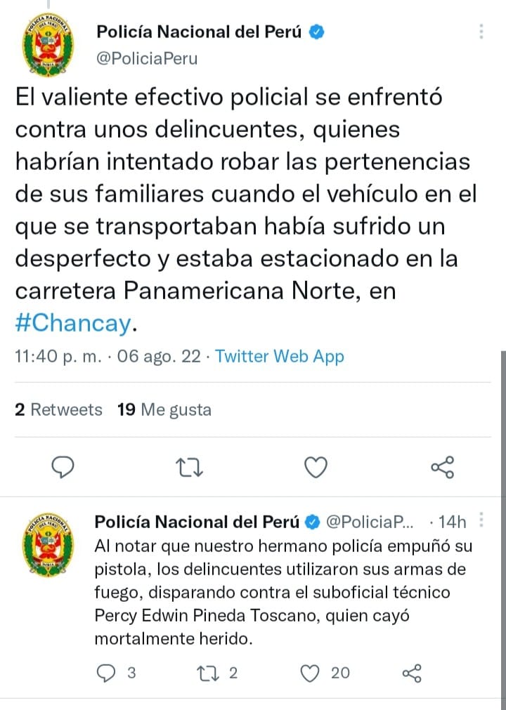 El suboficial técnico de tercera de la PNP, Percy Edwin Pineda Toscano, fue asesinado a balazos al intentar frustrar un robo a sus familiares en la provincia de Chancay.