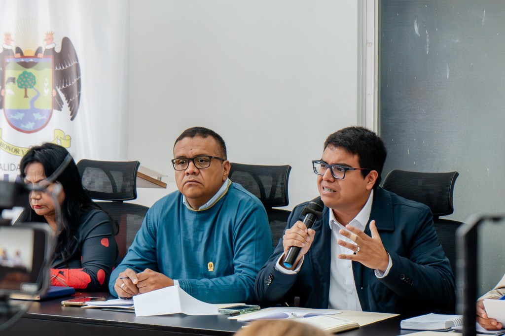 Los ingenieros Juan Carlos Paredes y Máximo Galindo de Colquisiri, así como la licenciada Maryorie Barrantes del equipo Zueh, eran los jurados que evaluaban los diferentes proyectos elaborados por los alumnos con material reciclable.