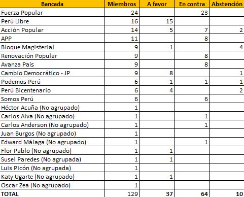 El dictamen recaído en el Proyecto de Ley 3132 tuvo el respaldo de 91 congresistas en la primera votación, y con 82 votos a favor, se logró exonerar la segunda votación del texto sustitutorio. Ahora queda en manos del Poder Ejecutivo oficializarlo mediante su publicación en el Diario Oficial El Peruano.