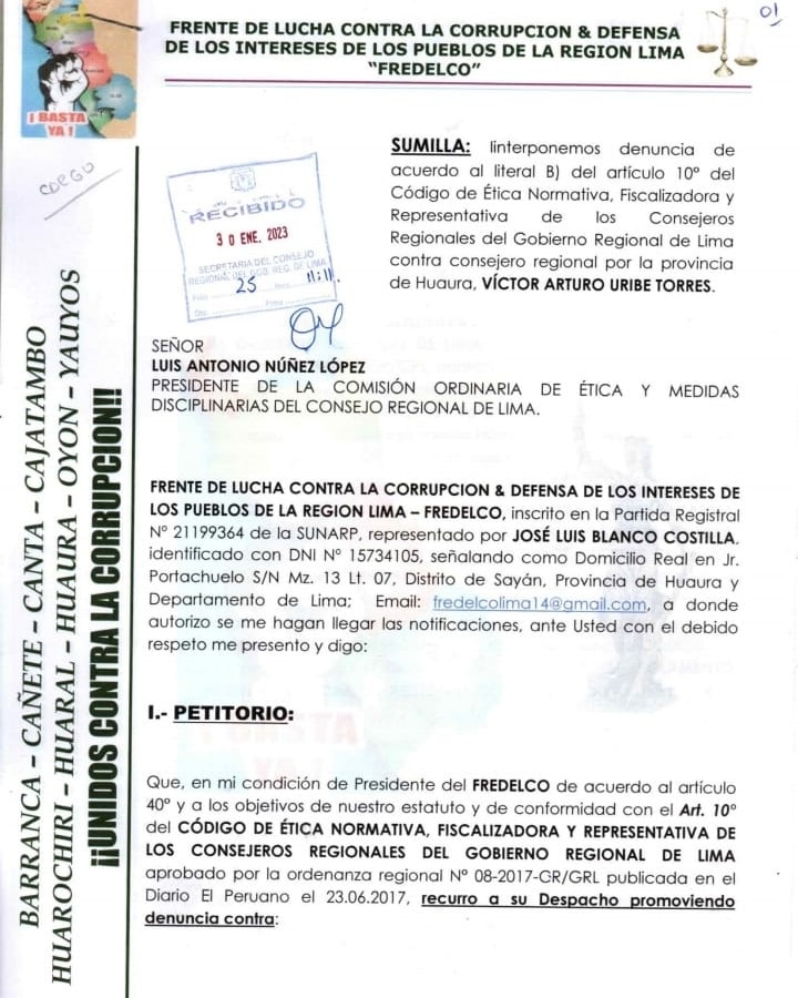 Sucedió al promediar las 10 de la mañana del martes 25 de abril, cuando el consejero por la provincia de Huaral Víctor Hugo Huaccho, se dirigía a la sede del Gobierno Regional de Lima.