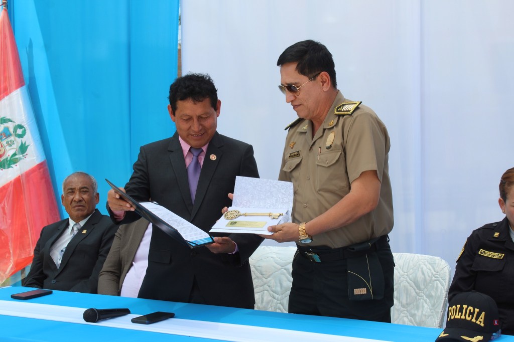 El alcalde de Aucallama, Ing. Edwin Valdivia Santiago, hizo entrega de la «Llave de la Ciudad» al coronel PNP Manuel Farías Zapata en reconocimiento a su incondicional apoyo y asesoramiento constante en aras de mejorar la seguridad ciudadana en el distrito de Aucallama.