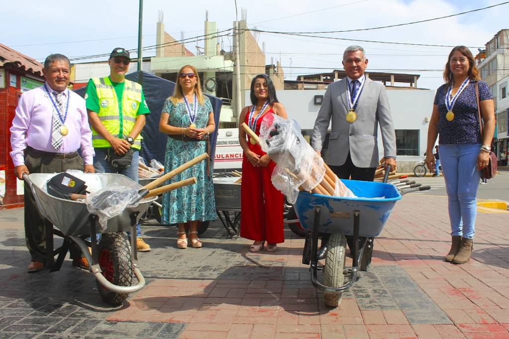El alcalde provincial, Fernando Cárdenas, agradeció esta mañana la donación de 60 lampas, 60 picos y 20 carretillas de parte de la Minera Colquisiri, apoyo que fue entregado a través de su representante, el ingeniero Juan Carlos Guzmán.