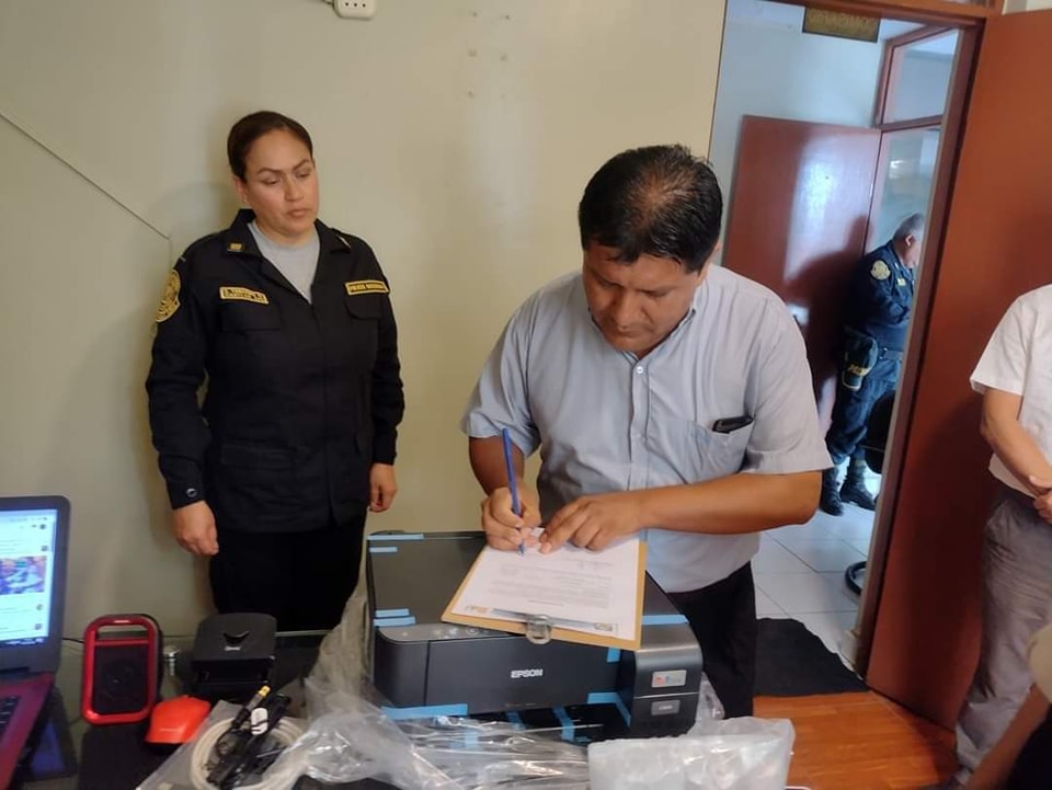El alcalde de Aucallama, Ing. Edwin Valdivia, hizo eco del pedido realizado por la comisaría de Aucallama y entregó una impresora para los trabajos administrativos del personal policial.