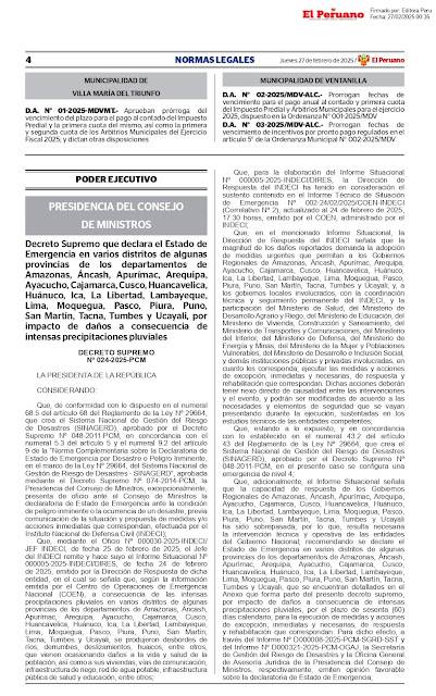 El estado de emergencia en Lima Metropolitana y la Provincia Constitucional del Callao entrará en vigencia desde la medianoche del 21 de octubre de 2025. La medida fue oficializada a través del Decreto Supremo Nº 124-2025-PCM, emitido por el Poder Ejecutivo, y tendrá una duración de treinta días calendario.