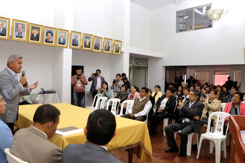 En el Salón Túpac Amaru recibió a nuestros maestros de la Asociación de Docentes Cesantes y Jubilados y a sus representantes, maestros que destacaron por su labor como docentes, así como por su compromiso de lucha sindical.