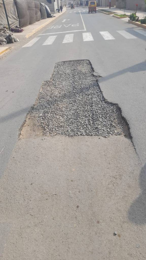 La Gerencia de Fiscalización y Control realizó una supervisión en una vía intervenida por la empresa EMAPA, constatando que, tras la ejecución de trabajos por parte de dicha entidad, no se efectuó la restitución correspondiente de la capa asfáltica. Durante la inspección se evidenciaron daños visibles en la pista, los cuales afectan no solo la transitabilidad del sector, sino también la seguridad de los peatones y conductores.