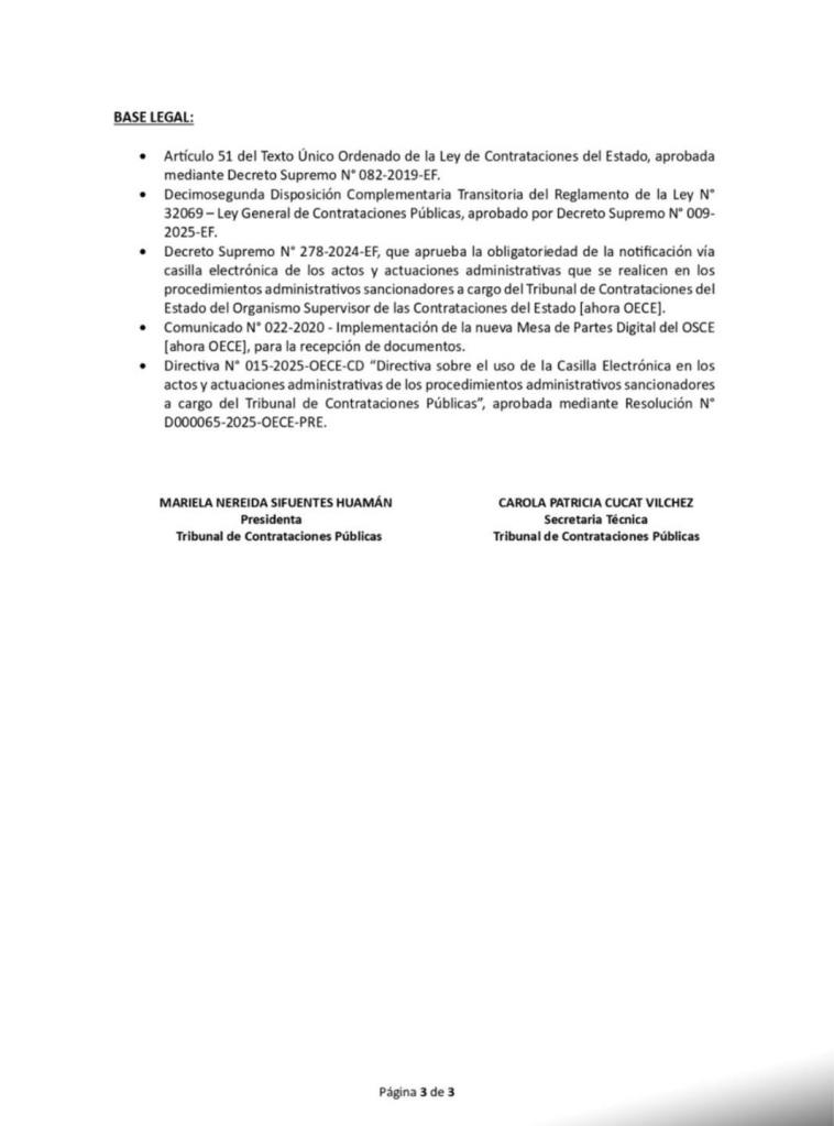 Ante estos elementos, el Tribunal decidió abrir procedimiento sancionador. De confirmarse la infracción, Quispe Cisneros podría ser inhabilitada entre 3 y 36 meses para contratar con el Estado.