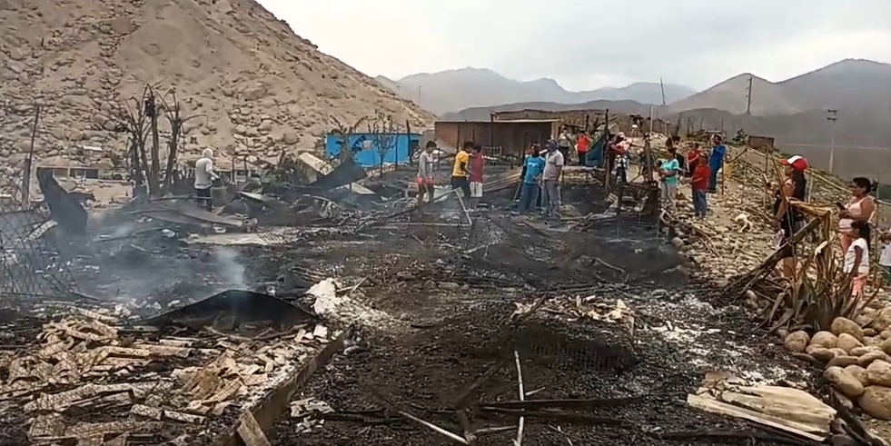 Trágico 25 de diciembre para diez familias del distrito de Sayán. Un voraz incendio consumió todas su pertenencias en el sector de Lomas de Portachuelo, desde electrodomésticos y animales muertos son las pérdidas de las familias.