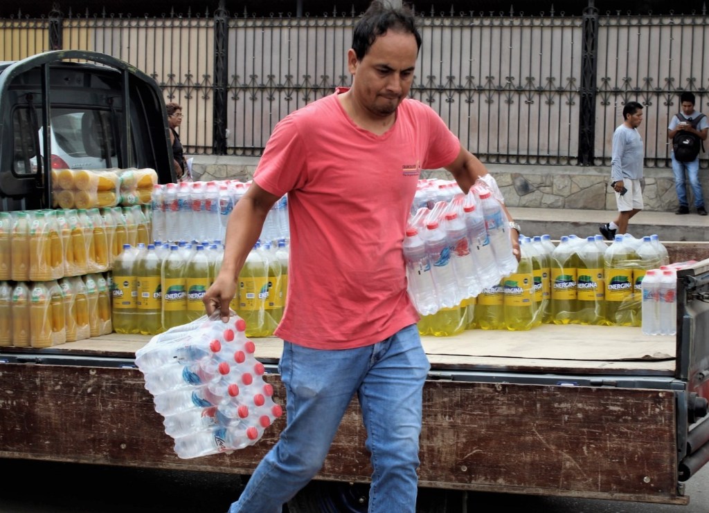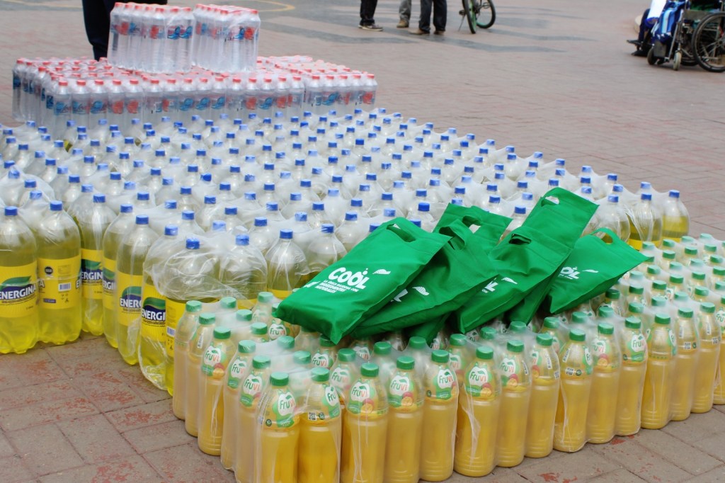 Los donativos, consistente en agua y bebidas, que Industrias San Miguel (ISM) y el Grupo AJE entregaron a la Comuna Huaralina, fueron entregados hoy en horas de la tarde a los damnificados del alud en la Perla-Chaupis.