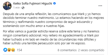 En la última edición de ‘América hoy’, Ethel Pozo mencionó que se sintió afectada con la noticia de la separación de Keiko y Mark pues, aparentemente, ella mantiene una amistad detrás de cámaras.