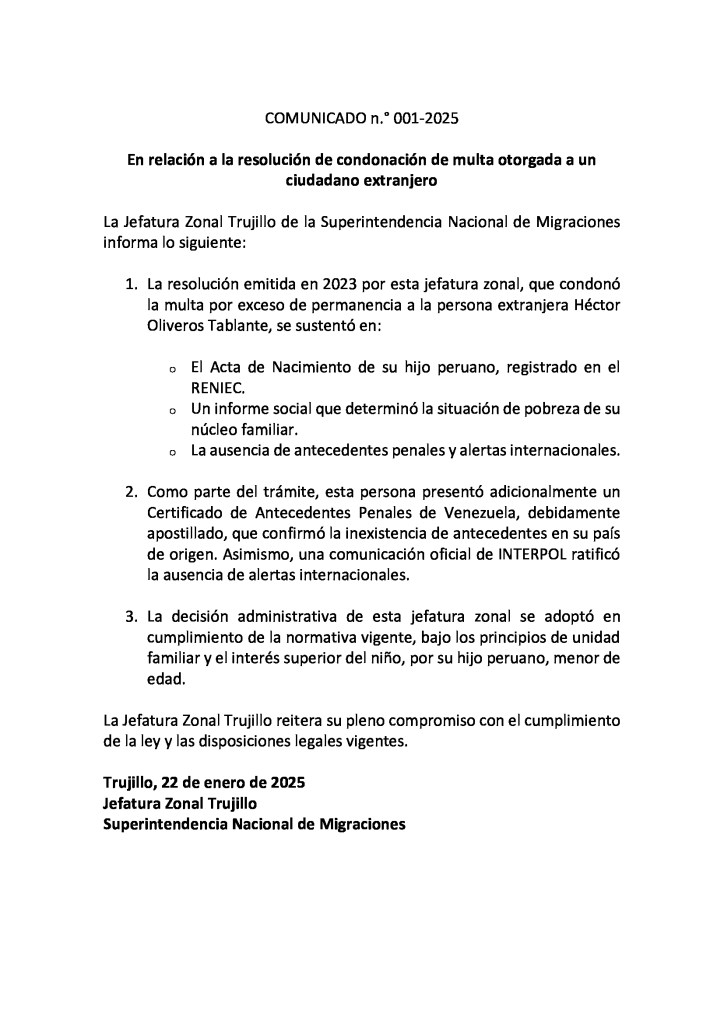 Durante el primer mes del estado de emergencia decretado por el Gobierno de José Jerí, la Policía tuvo a su cargo el control de identidad de más de 2,223 extranjeros, y Migraciones verificó su estatus migratorio, luego de lo cual se determinó que 411 de ellos estaban en condición irregular.