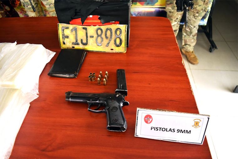 Producto de esta intervención, se incautó una camioneta 4X4 marca Hilux color blanco, un saco negro con 40 paquetes de cocaína (41,890 kg), un arma de fuego tipo pistola Beretta 9 mm, seis municiones 9mm (sin percutar), cuatro casquillos de munición 9 mm y una placa de rodaje F1J-898.