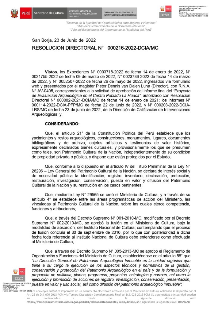 RESOLUCIÓN DIRECTORAL N° 00216-2022-DCIA/MC