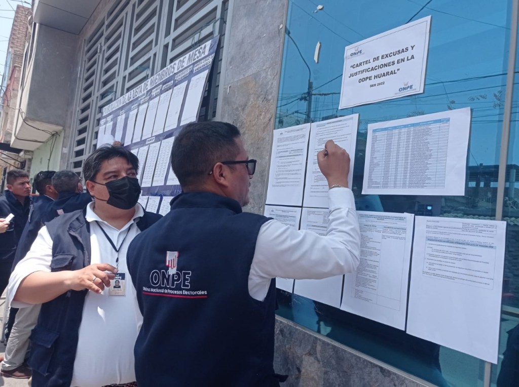 Luego firmaron el acta correspondiente el secretario general del Jurado Electoral Especial (JEE), el fiscalizador técnico del Jurado Electoral Especial (JEE) Huaral, el jefe de la Oficina Descentralizada de Procesos Electorales (ODPE) Huaral y el encargado de Centro de Cómputo Descentralizado.