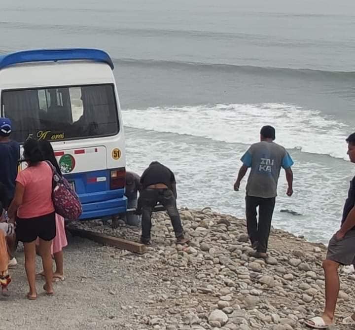 Una custer de transporte público quedó atorada en plena bajada a la playa La Calichera, en Chancay. Al parecer, una mala maniobra habría causado el hecho.