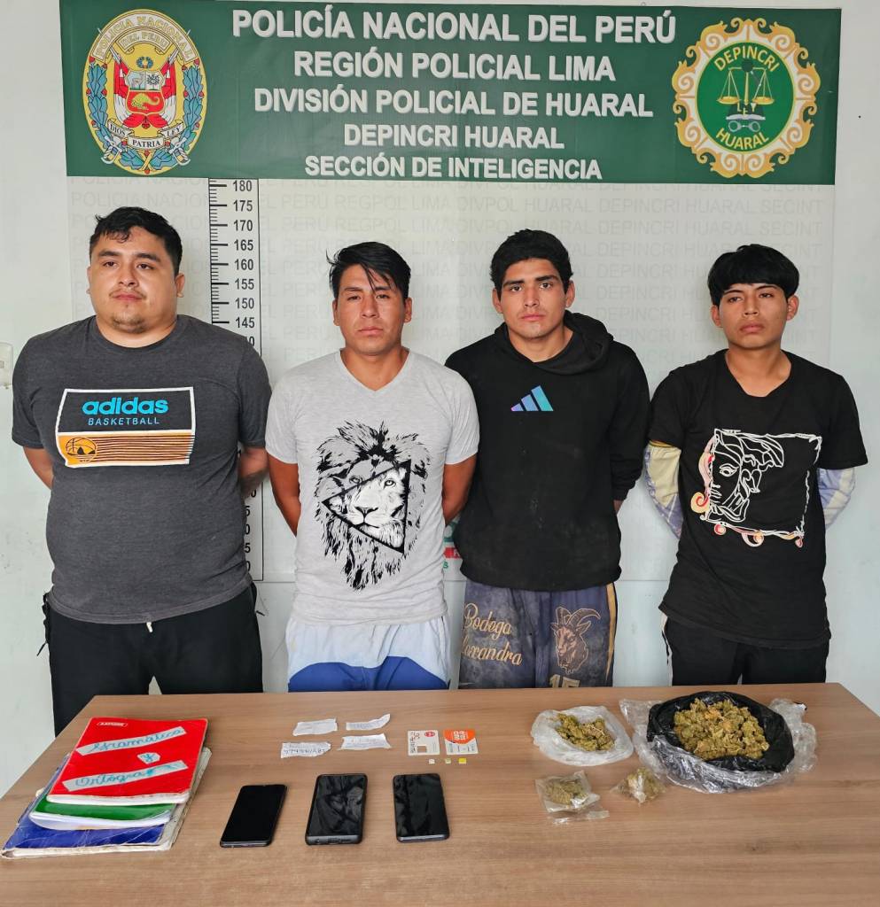 Personal policial de la División Policial de Huaral logró la captura de cuatro integrantes de la presunta banda delincuencial «Los Finos del Norte», involucrados en el presunto delito contra el patrimonio en la modalidad de extorsión y el delito contra la salud pública, tráfico ilícito de drogas, así lo dio a conocer el coronel Alberto Laureno, jefe de la dependencia policial en una conferencia de prensa a los medios locales.