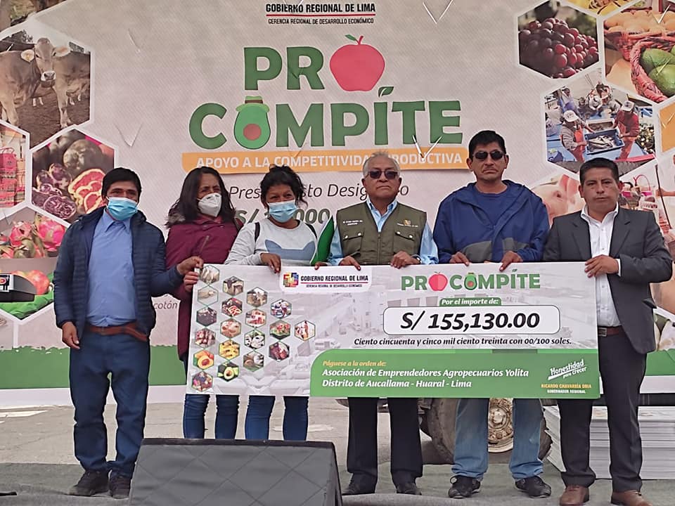 En acto protocolar, el gobernador regional Ricardo Chavarría Oria; acompañado del gerente regional de Desarrollo Económico Fredy Gamarra Concepción y funcionarios de primera línea del Gore Lima; efectuó la entrega de cheques simbólicos a los ganadores del Fondo Concursable de Apoyo a la Competitividad – Procompite 2021.
