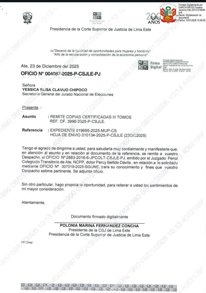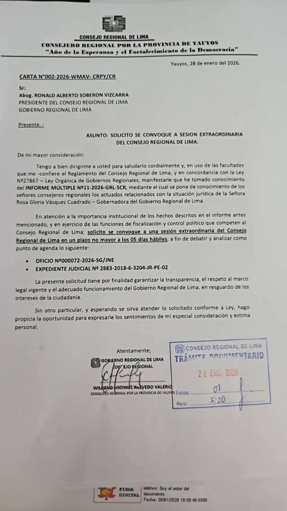 El hecho no pasó desapercibido. Mediante el Oficio N.° 2013-2024-2025-GBU/CR, fechado el 30 de enero de 2026, el congresista Guido Bellido Ugarte envió una carta directa y políticamente incómoda a la gobernadora regional, exigiendo la inclusión inmediata de los alcaldes omitidos en la convocatoria a la mesa de trabajo del 03 de febrero de 2026 en Huacho, donde se abordarán los proyectos de las rutas departamentales LM-116, LM-117 y LM-118.