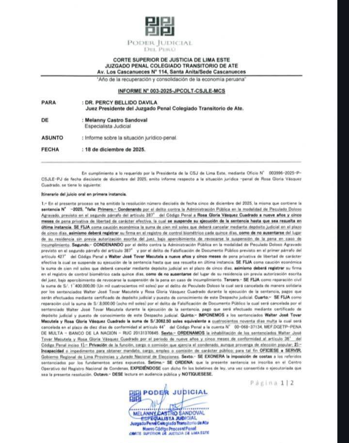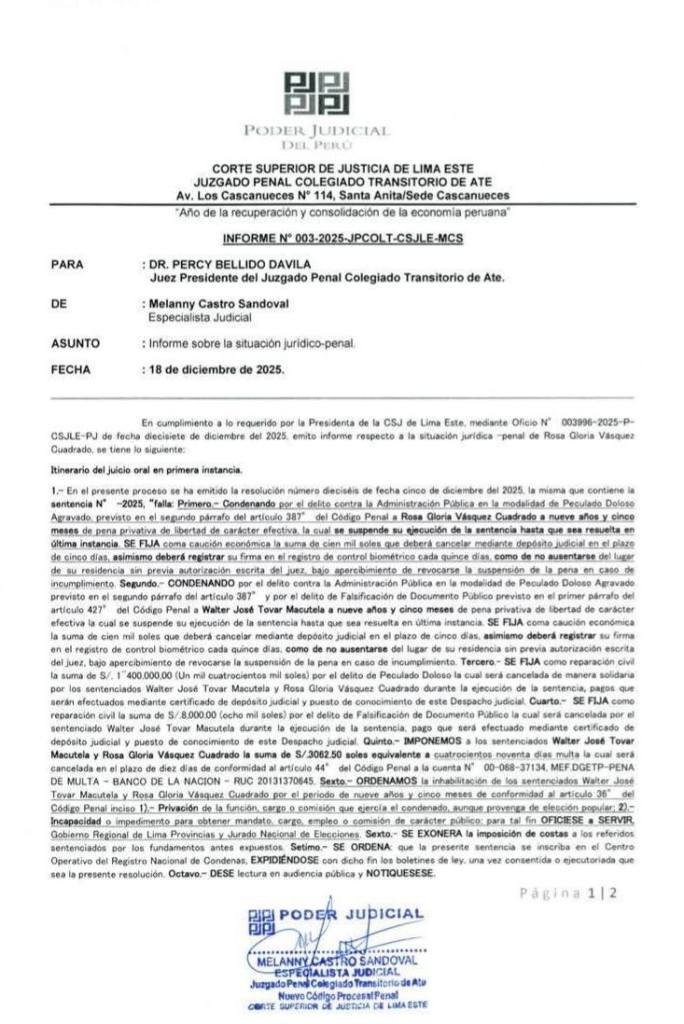 La carta de Bellido no solo es un reclamo administrativo. Es un jalón de orejas político que deja en evidencia una gestión regional que, una vez más, parece preferir manejar obras desde el escritorio y no desde el territorio.