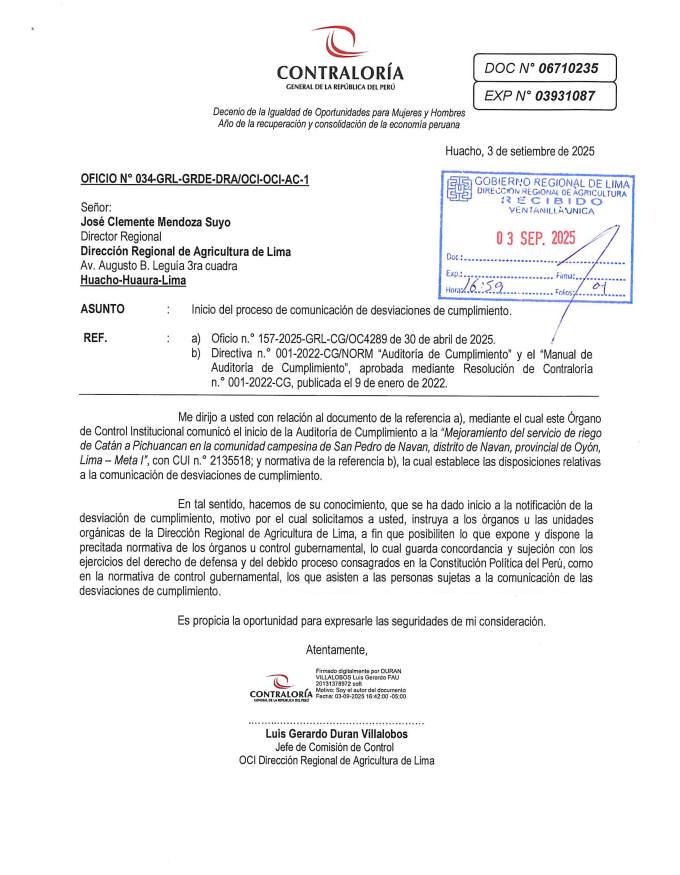 En la obra de riego Catán–Pichuancan (Naván, Oyón, CUI 2135518) el OCI halló valorizaciones que se pagaron al 100% pese a que la obra tenía evidentes defectos. Filtraciones de agua, falta de pruebas de calidad, etc.; casi S/570 mil de perjuicio entre partidas inconclusas, mayores gastos y penalidades no cobradas.