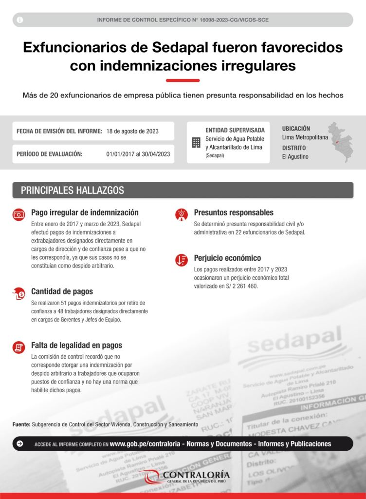 Además, detalló que la alteración en el color del agua se produce aguas abajo de sus bocatomas de captación, es decir, después de que el agua ha sido tomada para su procesamiento. Por ello, este fenómeno no representa ningún riesgo para el abastecimiento de agua potable en Lima y Callao.