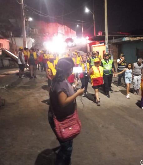 El recorrido se realizó en el Pueblo Joven Sata Rosa Comité seis, siete y diecisiete, Maritima Alta y Pasaje Lulimachi en Chancay liderado por el Comandante PNP Sinesio Sánchez Alejo, Comisario del distrito que en coordinación con la señorita Xiomy Blas Azaña Coordinadora Distrital de las JVSC recorrieron a pie las principales calles y en dialogo con los vecinos solicitaron unirse en este trabajo invitándolos a conforman nuevas juntas vecinales.