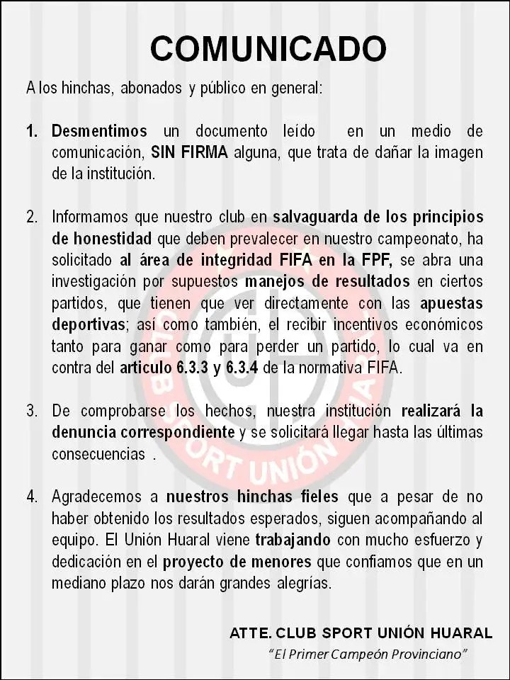 Cabe resaltar que la última vez que Unión Huaral jugó en casa frente a Deportivo Coopsol fue en la temporada 2019 y la victoria fue visitante por la mínima.