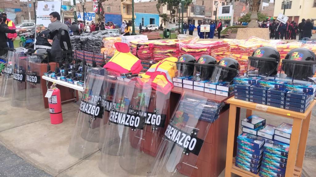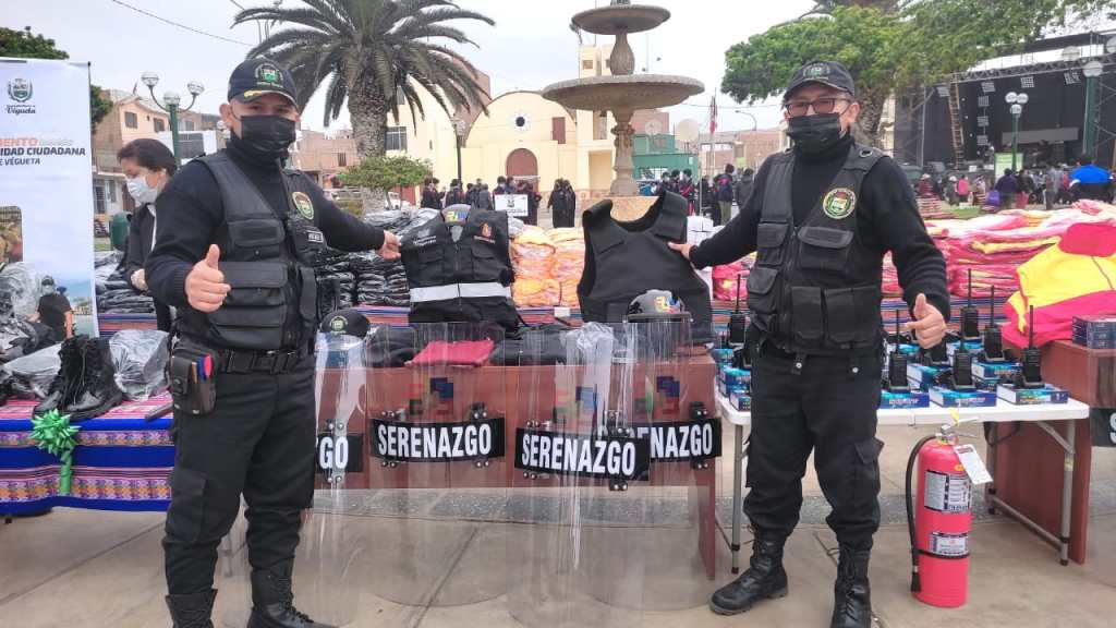 Mientras tanto, las juntas vecinales de Végueta accedieron a 70 linternas, 500 silbatos y 500 kits de indumentaria (polos, chompas, pasamontañas, chalecos drill y casacas Taslan).